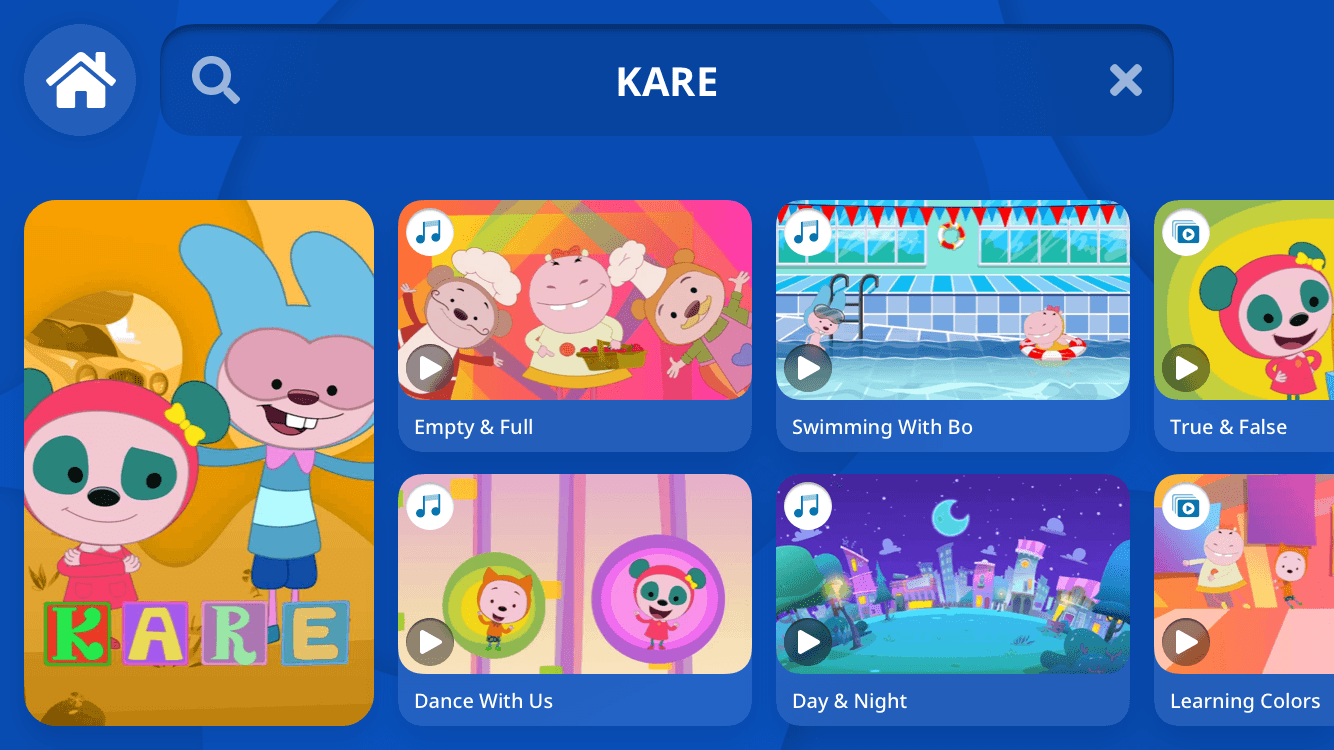 In the search feature, we show all characters' photos to make 3-6 years old kids able to find their target content directly instead of forcing them to find the content via a text search which is hard for kids between 3-6 years old.