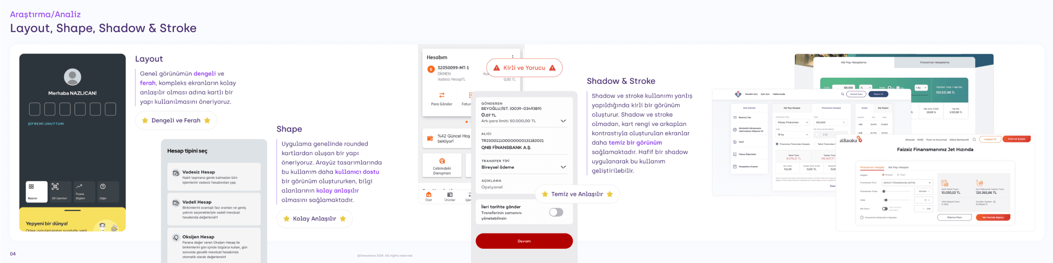 As part of Ziraat Katılım’s full digital transformation, the team aimed to modernize the product’s visual language and overall UI approach. I worked independently to create a Tone of Voice presentation defining how the brand should communicate with users and express itself visually. I also reviewed the existing UI, shared feedback, and proposed a new UI. Based on the outcomes of these sessions, we designed key user flows with aligned UI elements, and once the direction was finalized, we established a design system and component library.