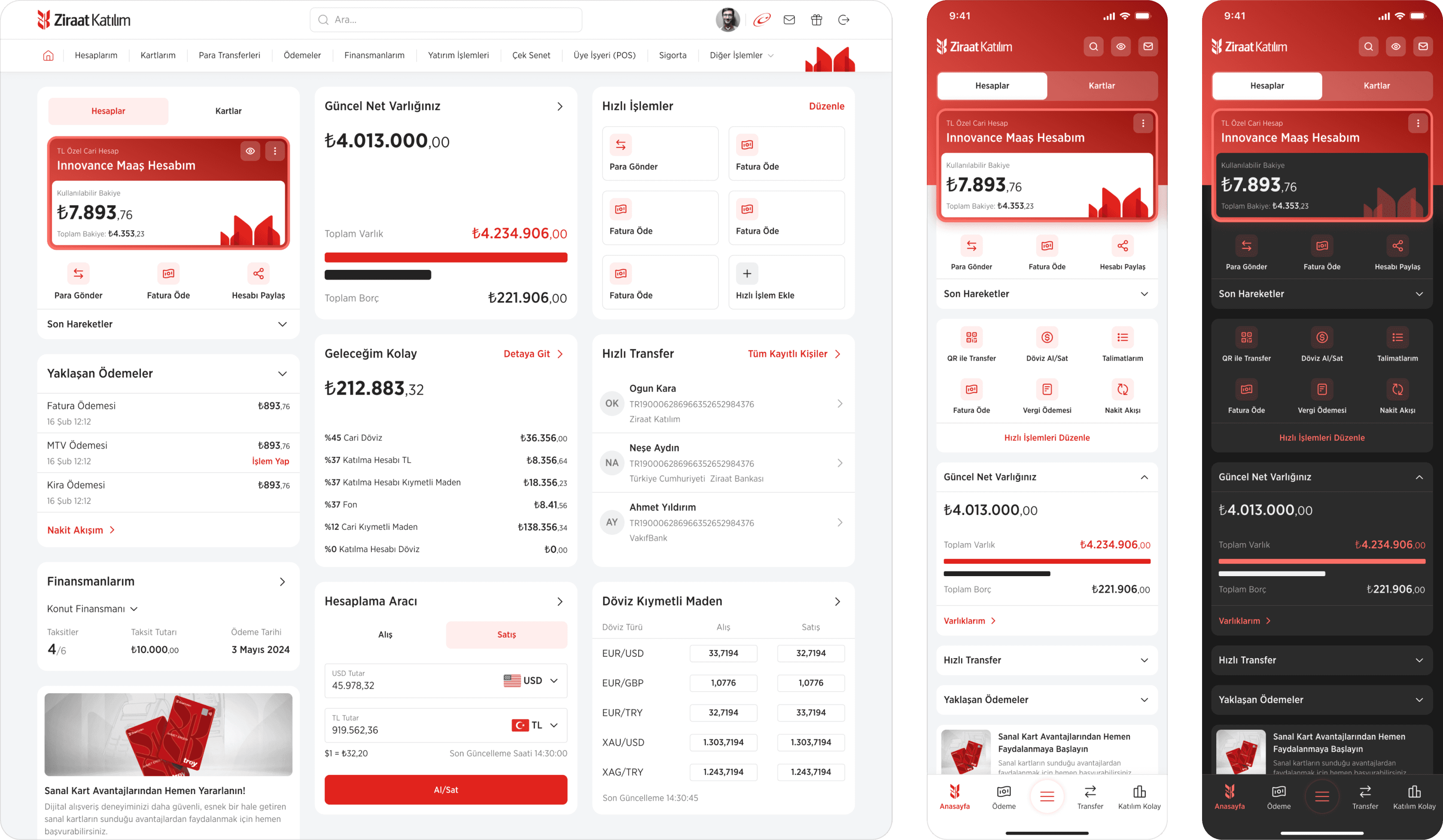 Defining the overall UI concept, conducting research for a new site map, designing key user flows from scratch, and aligning design decisions with the Ziraat Katılım team.